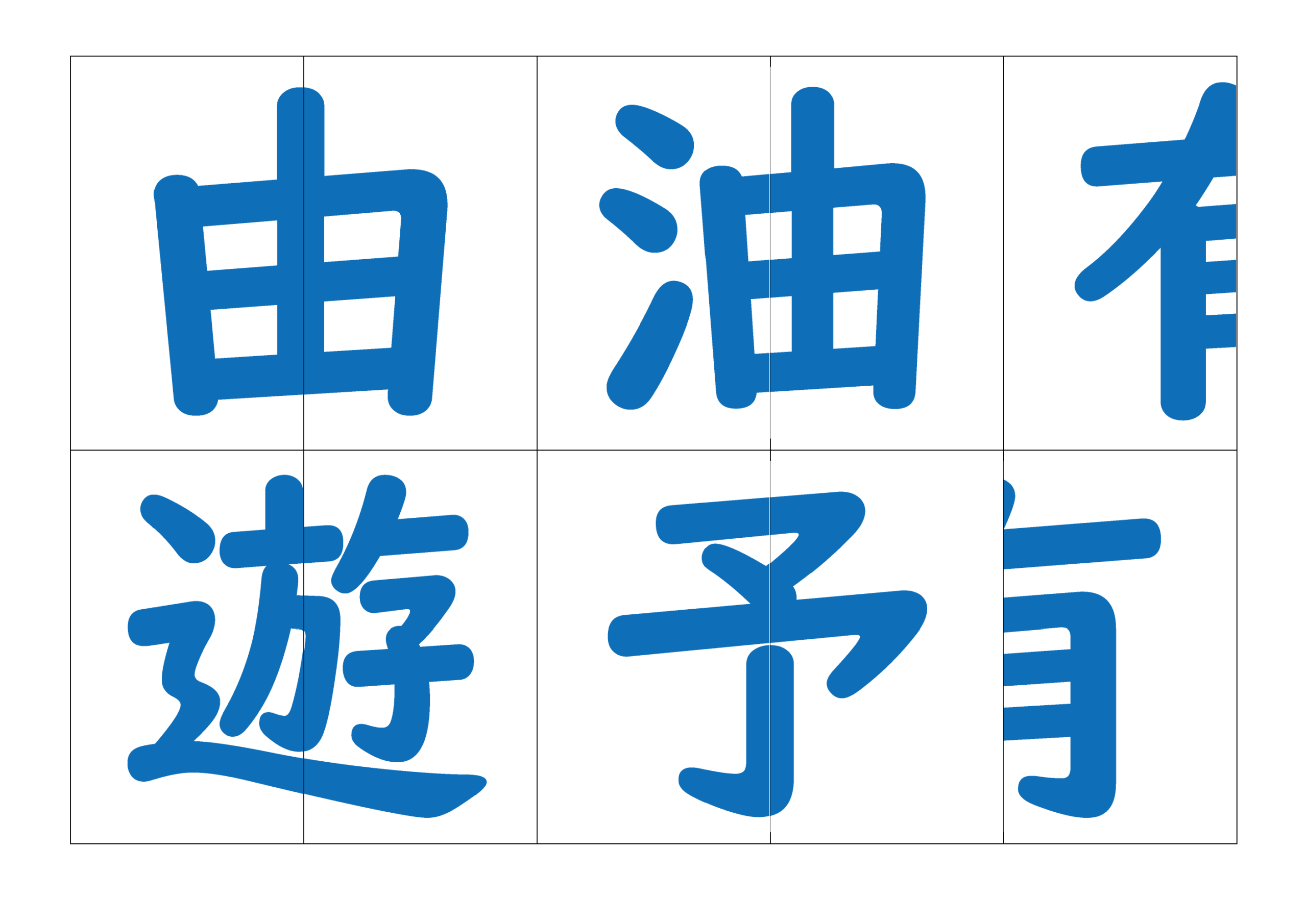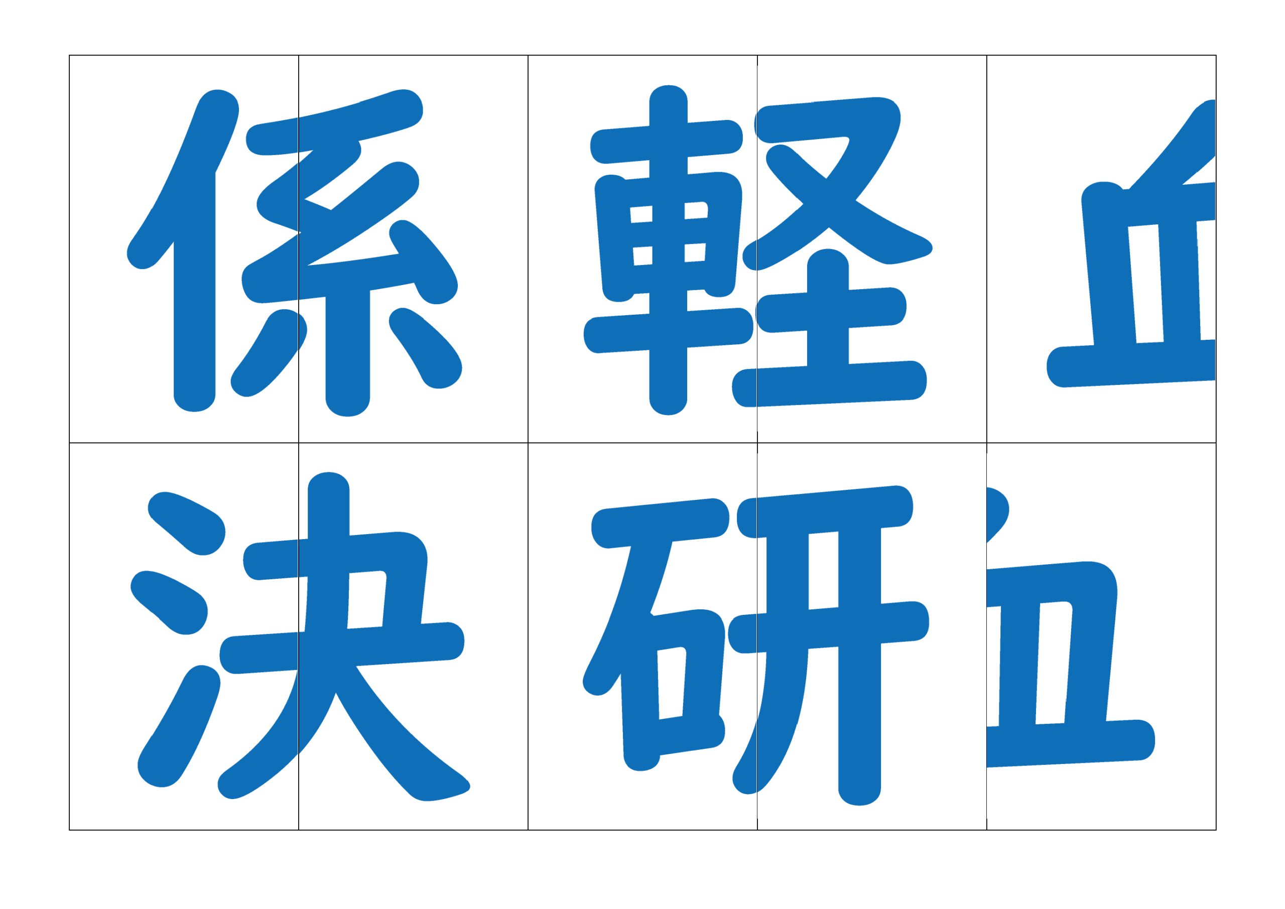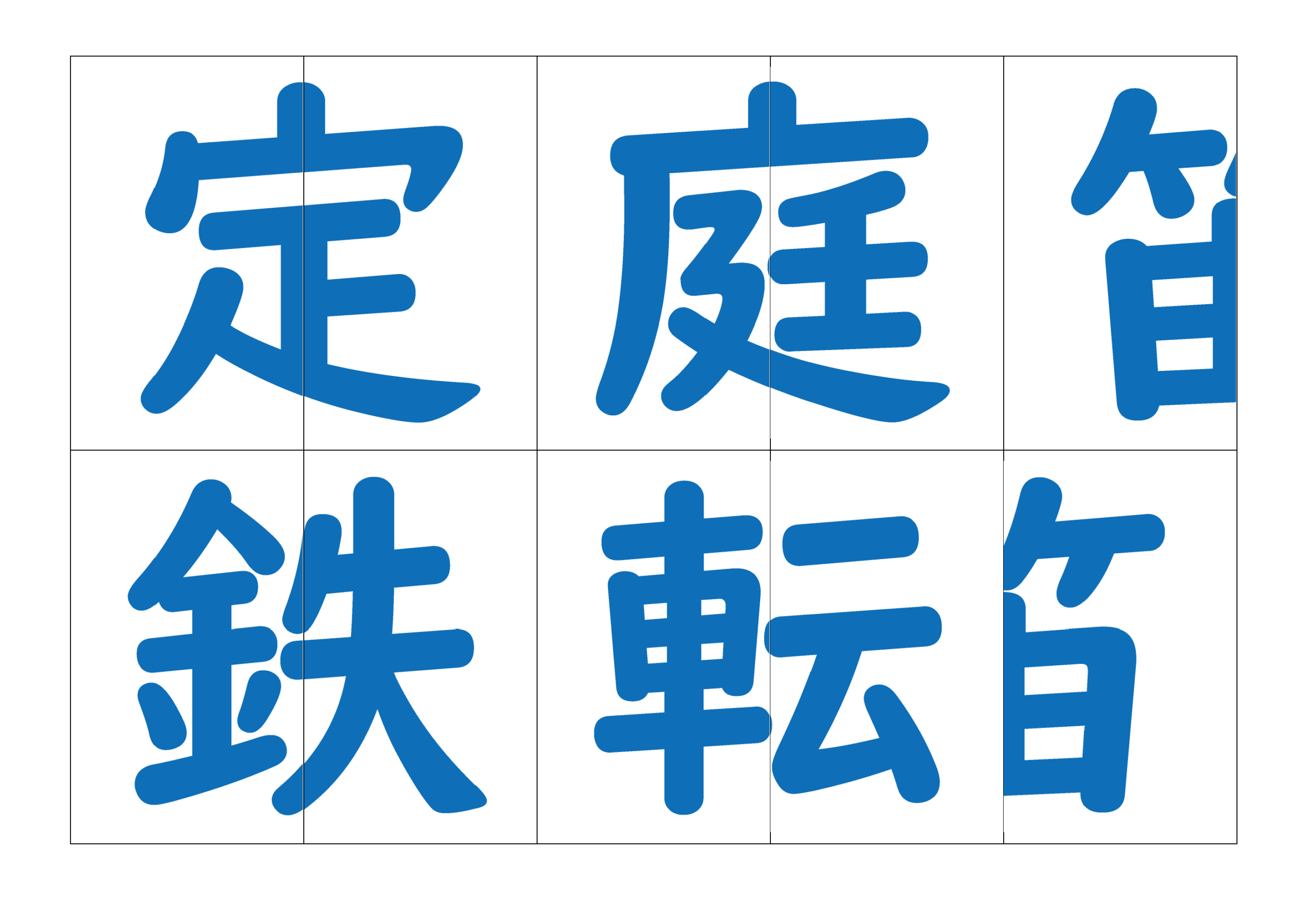 それぞれのページを印刷した後、線に沿って切り取ってください。左右のパーツをマッチさせて漢字の形を完成させます。裏面に模様を印刷すると、トランプのように「ばばぬき」や「神経衰弱」などの遊びもできます。尚、パーツに分けることにより似ている形のカードになることもあります。(たとえば「注」と「柱」や「役」と「投」や「待」と「持」と「詩」など)お子さんが迷われた時は、指導者の方が臨機応変に対応していただくとありがたいです。お子様の特性に応じて様々な学習方法を工夫していただければと思います。