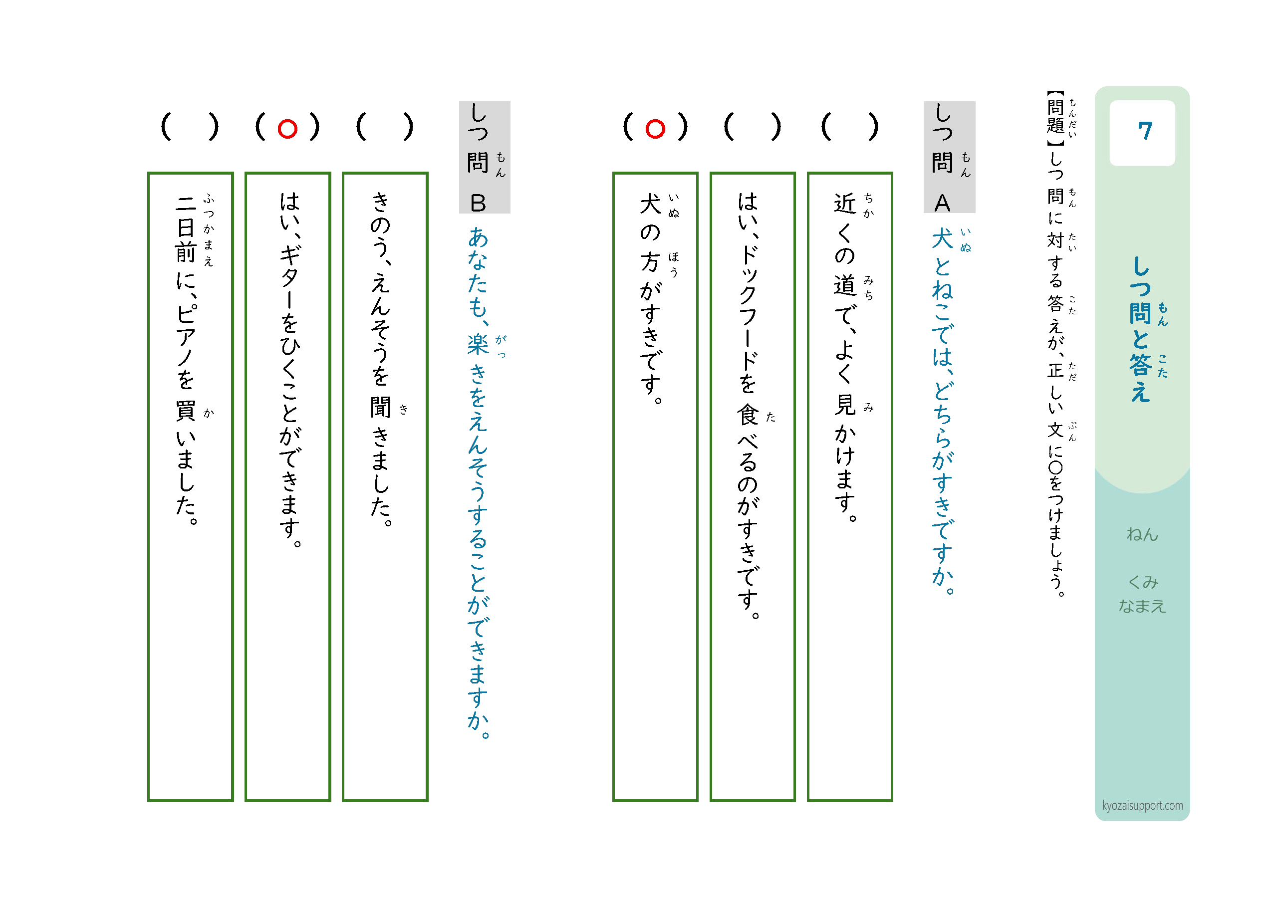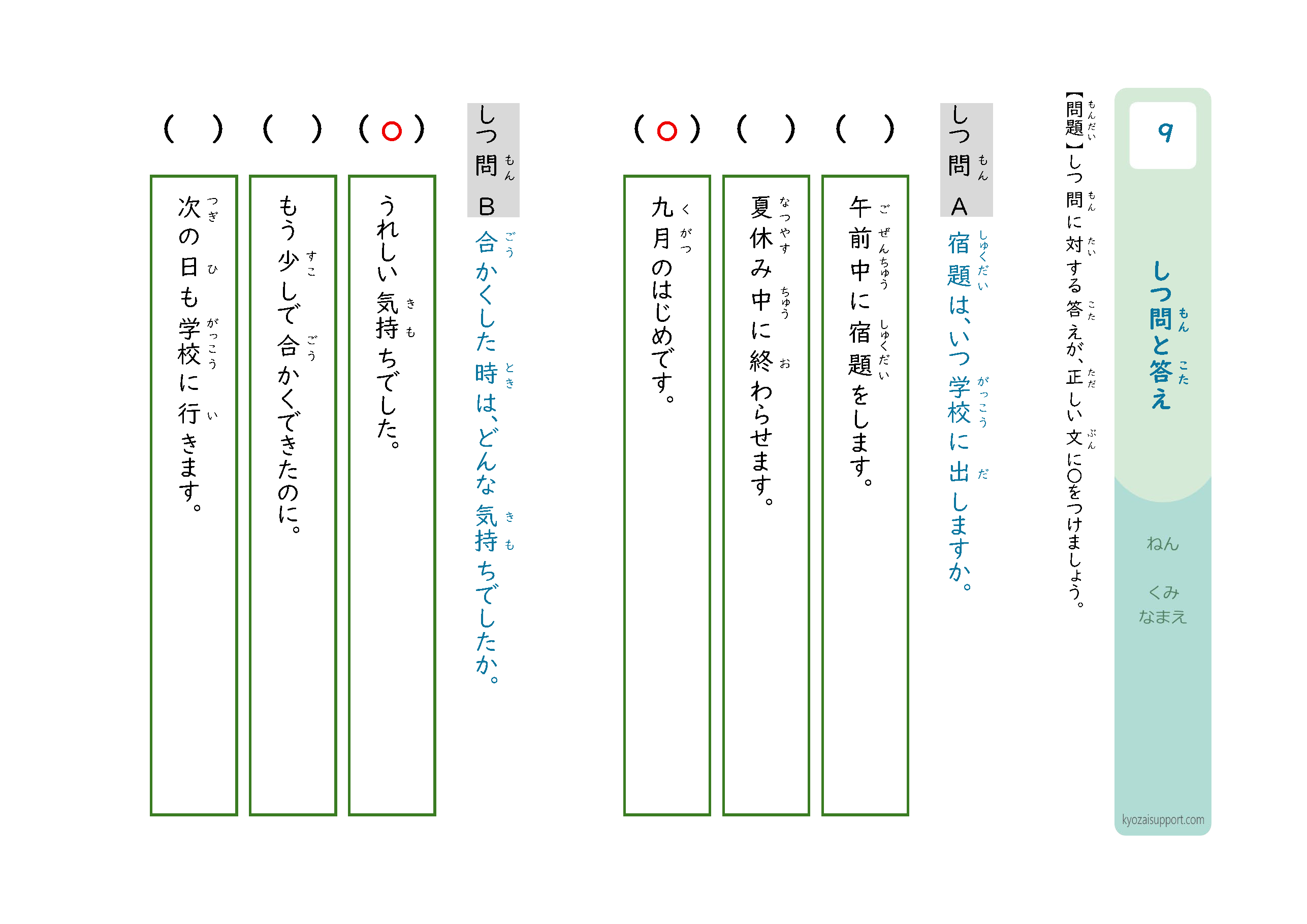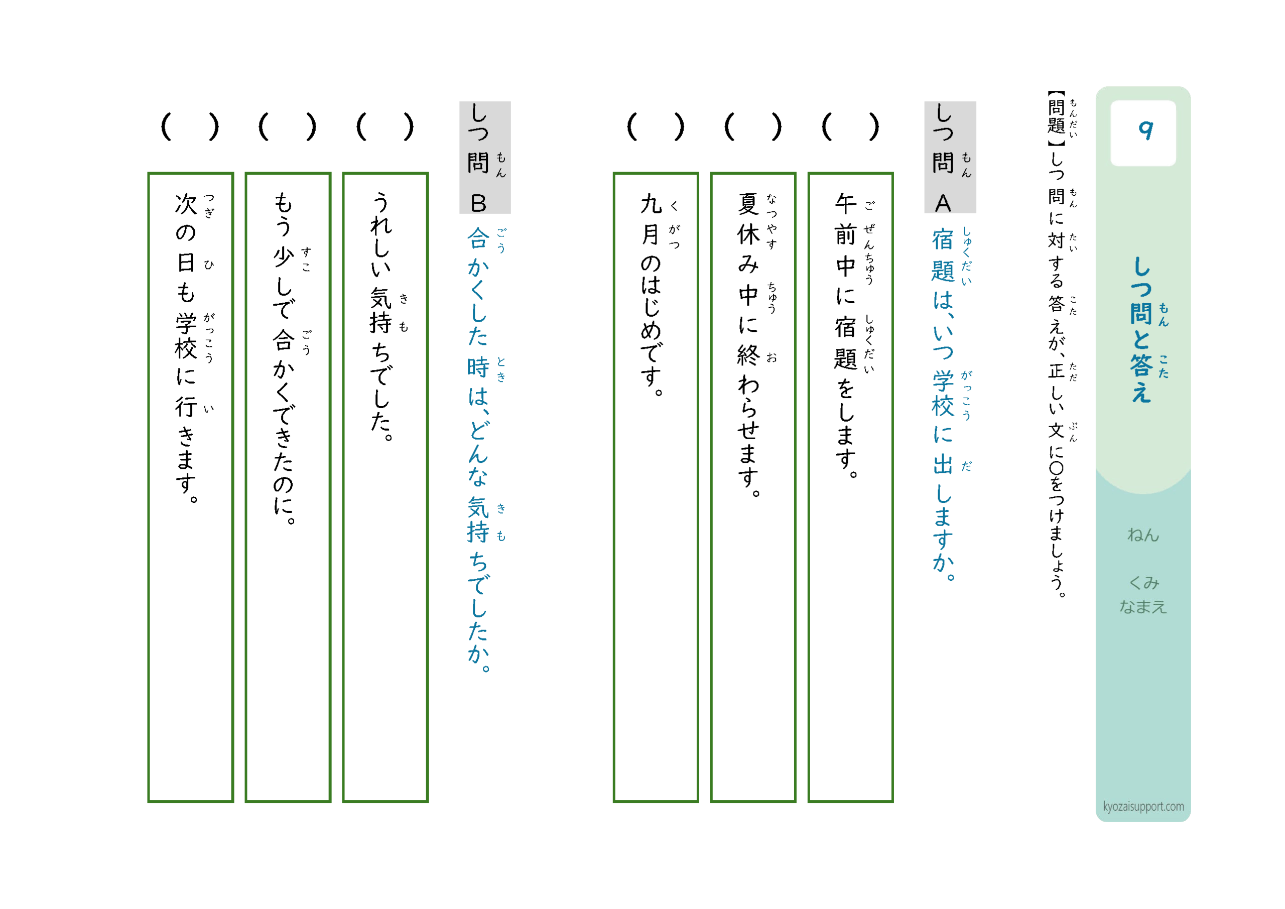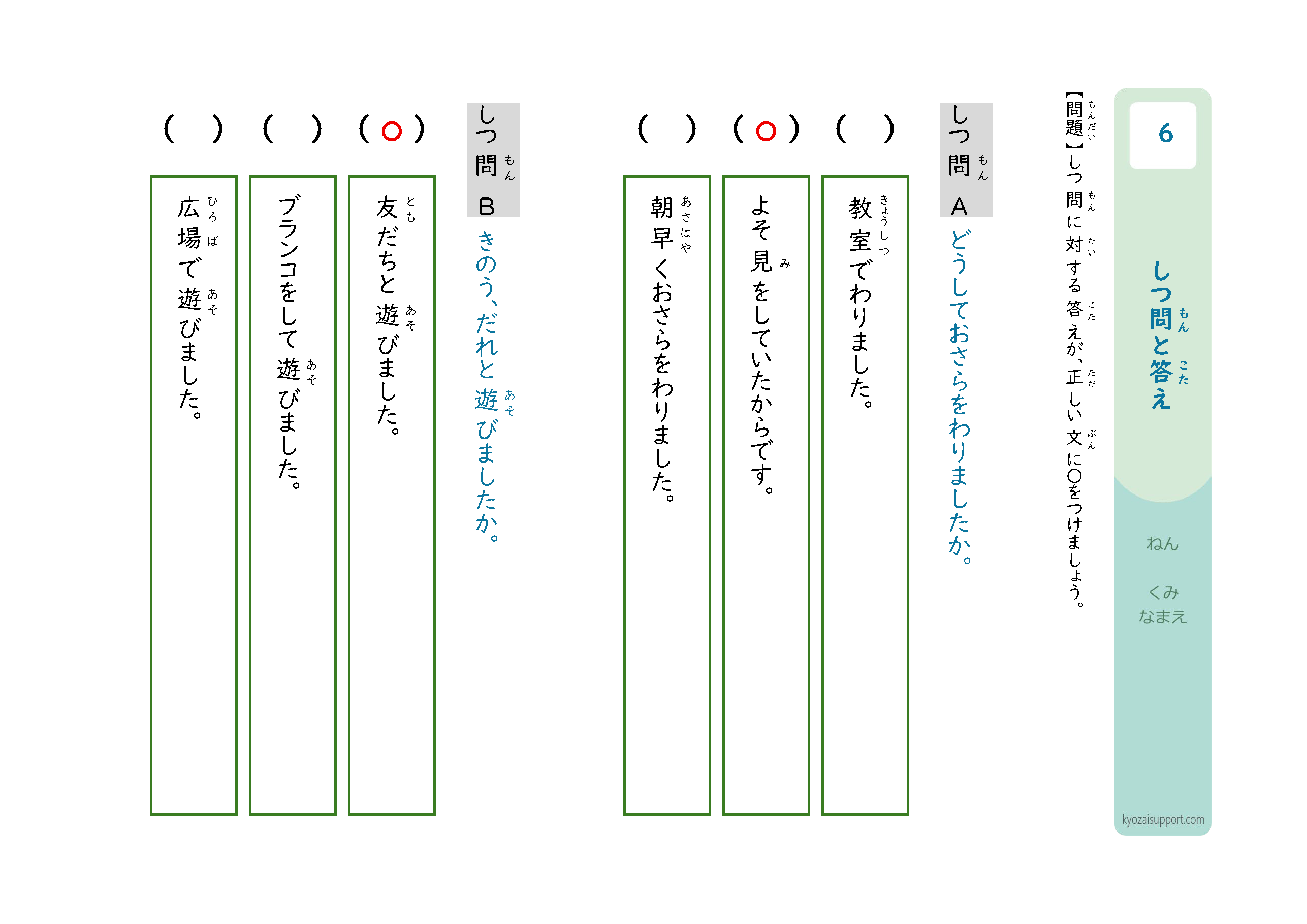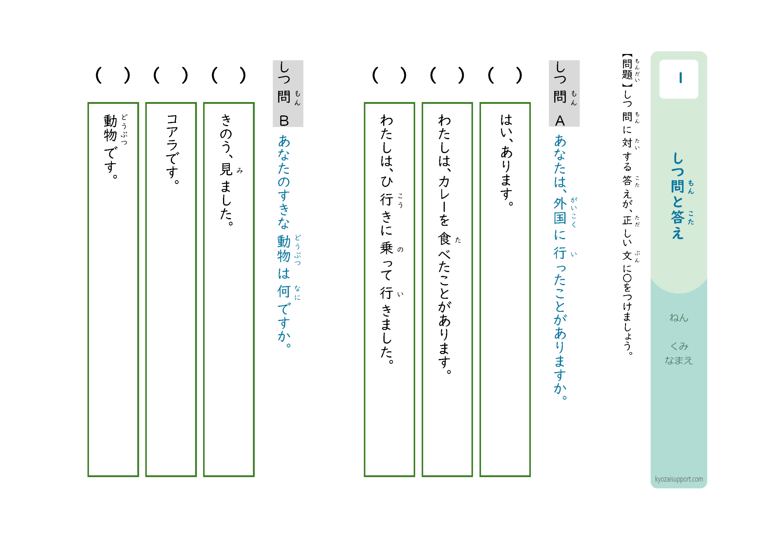 「質問と答え」プリントの使い方