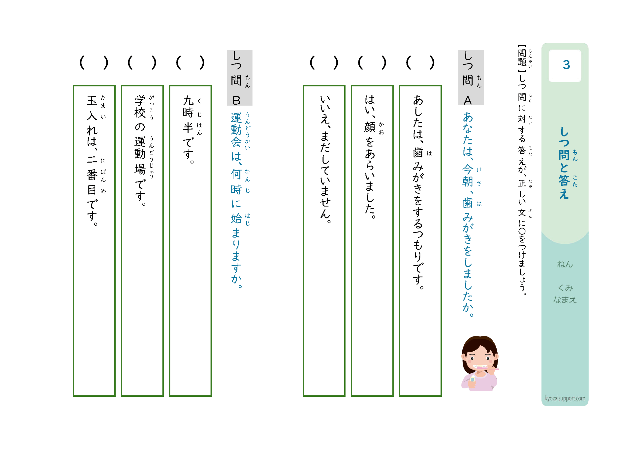 「質問と答え」プリント(一括ダウンロードはページ下)