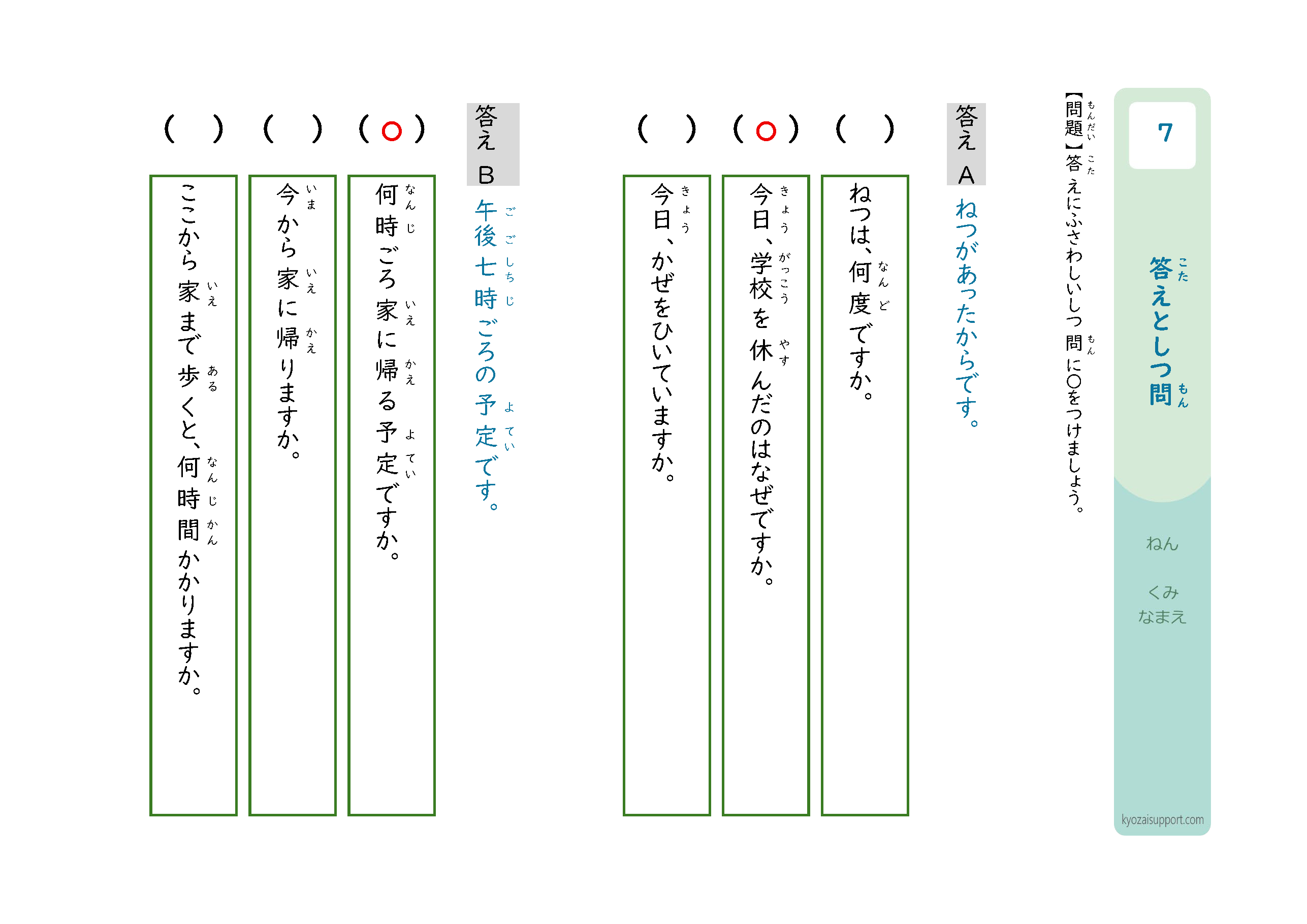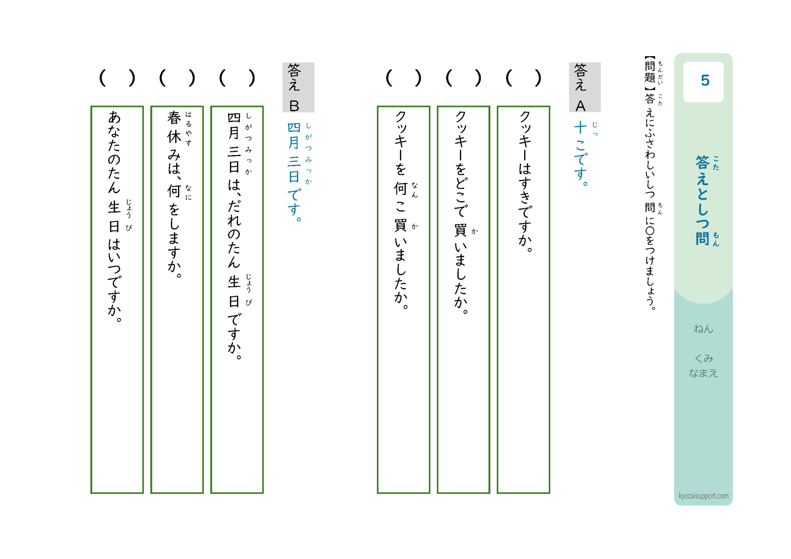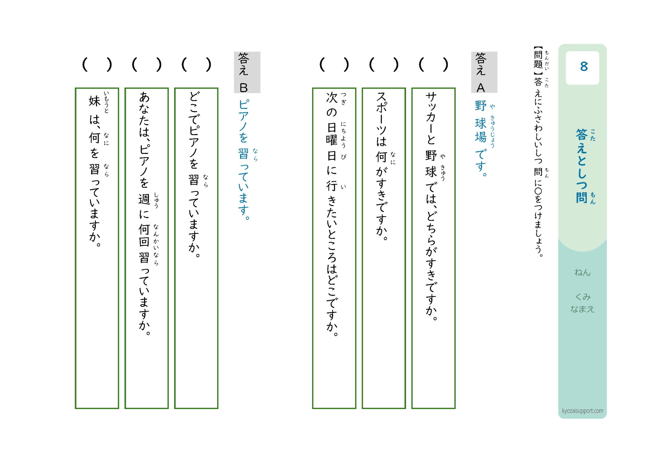 「答えと質問」プリントの使い方