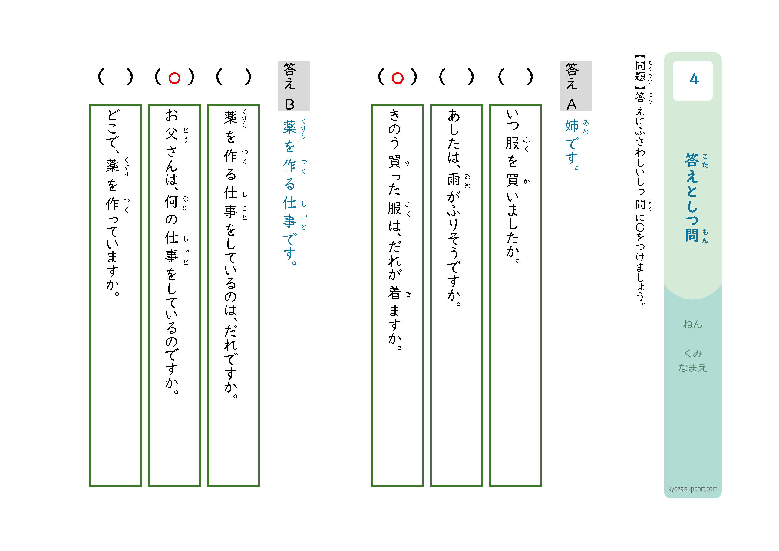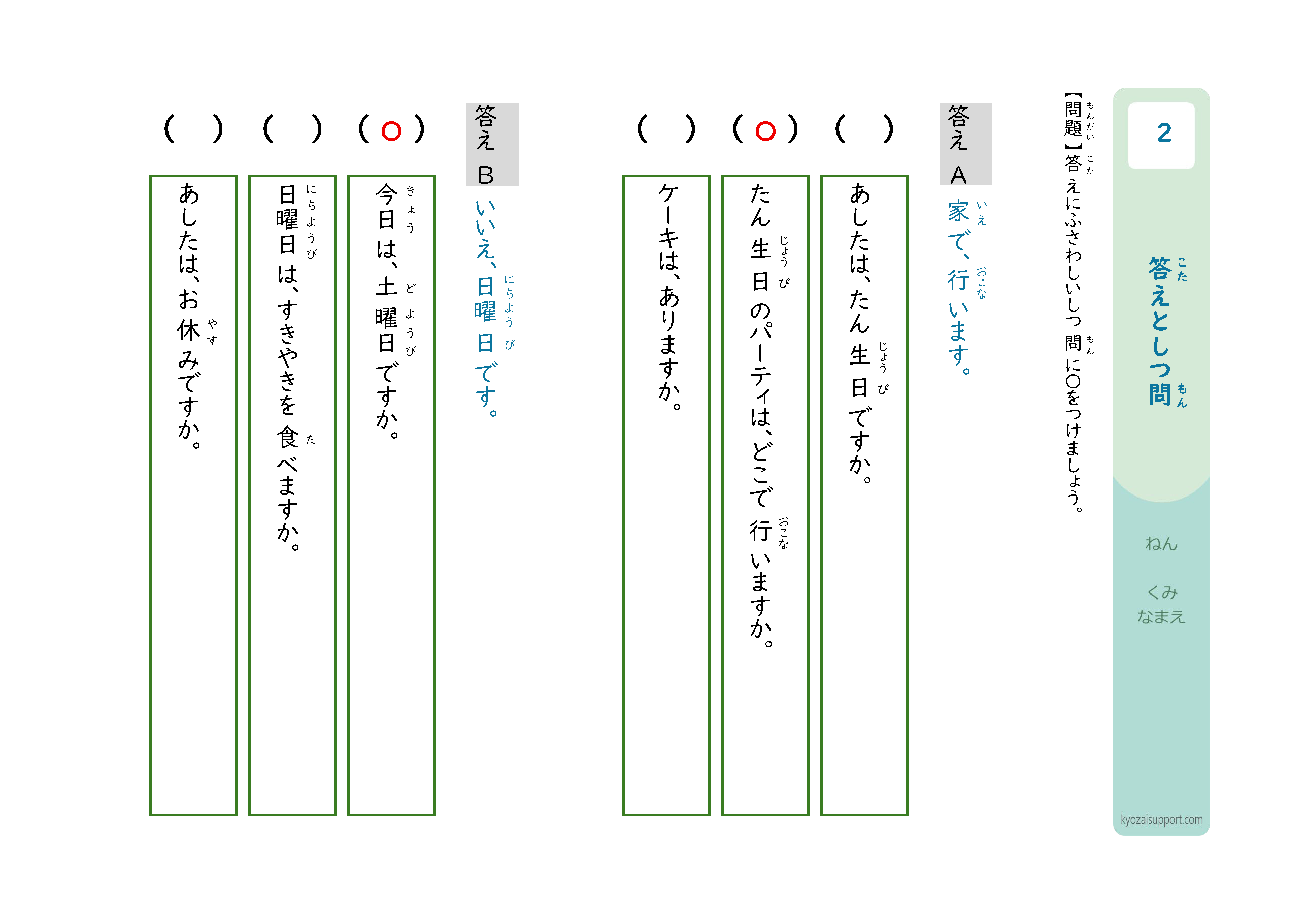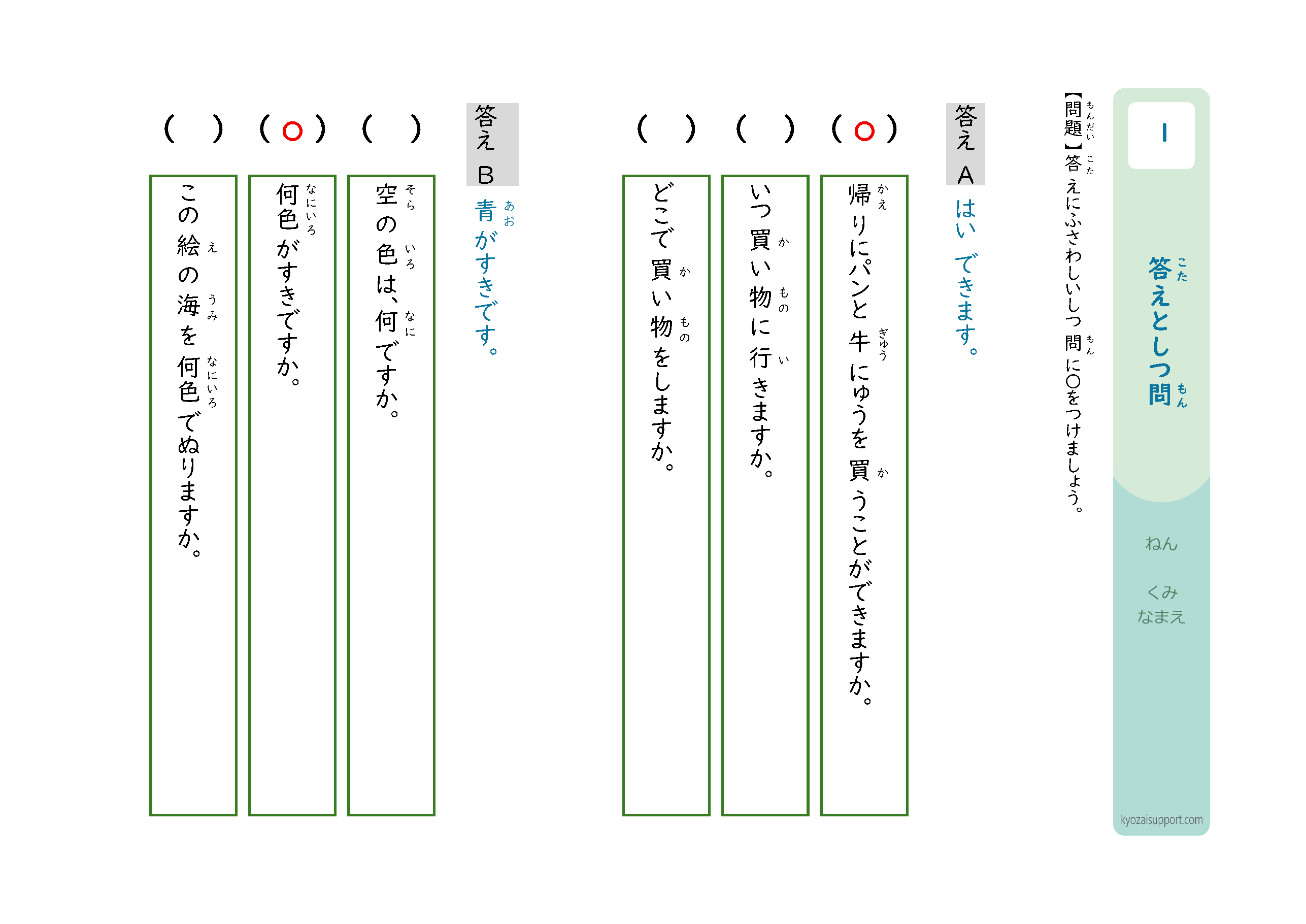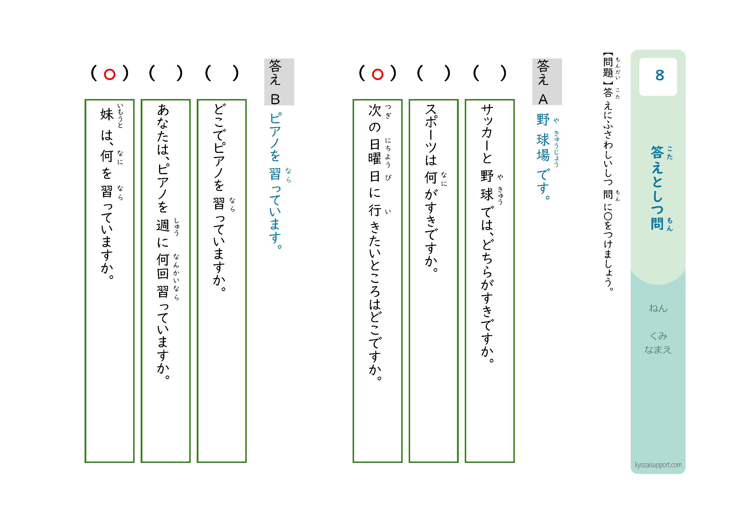 「答えと質問」プリントの使い方